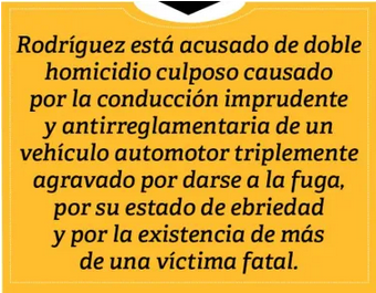 El próximo viernes, 10 de abril, iniciará el juicio por la muerte del abuelo Abel y su nietito Nehuel. Rodríguez está acusado de doble homicidio culposo causado por la conducción imprudente y antirreglamentaria de un vehículo automotor triplemente agravado por darse a la fuga, por su estado de ebriedad y por la existencia de más de una víctima fatal.
