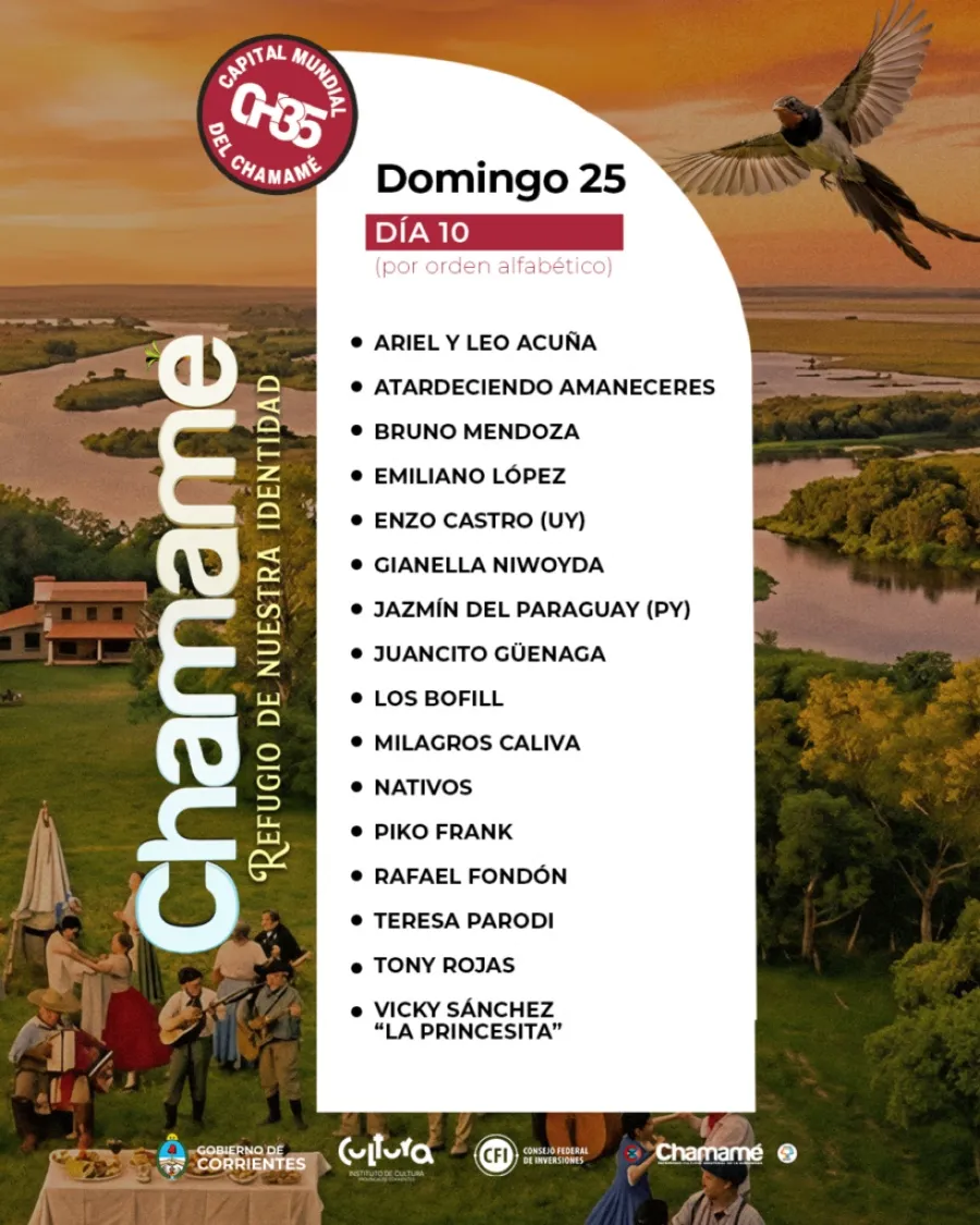 Del 16 al 25 de enero, Corrientes es el epicentro de la celebración mundial del chamamé, declarado Patrimonio cultural inmaterial de la humanidad por la UNESCO en 2020, mediante la 35ª edición de la Fiesta Nacional del Chamamé, 21ª Fiesta del MERCOSUR y 5ª Celebración Mundial que tiene su desarrollo central en el Anfiteatro Mario del Tránsito Cocomarola y en diversos puntos de la ciudad y el interior provincial.