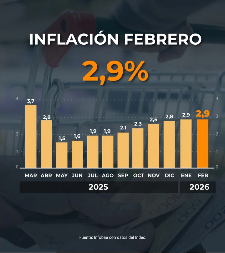 Tras dos meses consecutivos con un índice mensual de 2,9%, el dato de marzo apunta a situarse por encima del 3% para la mayoría de los consultores. “A nosotros marzo nos está dando 3,1%. Seguramente va a ser mayor que la suba salarial, con lo cual sería también una pérdida de ingresos para marzo” dijo el economista Martín Rapetti, director de Equilibra, en una entrevista en Infobae en Vivo. A los factores macro locales, se suma uno que aporta más incertidumbre: el impacto de la suba del petróleo disparada a partir de la guerra en Medio Oriente.