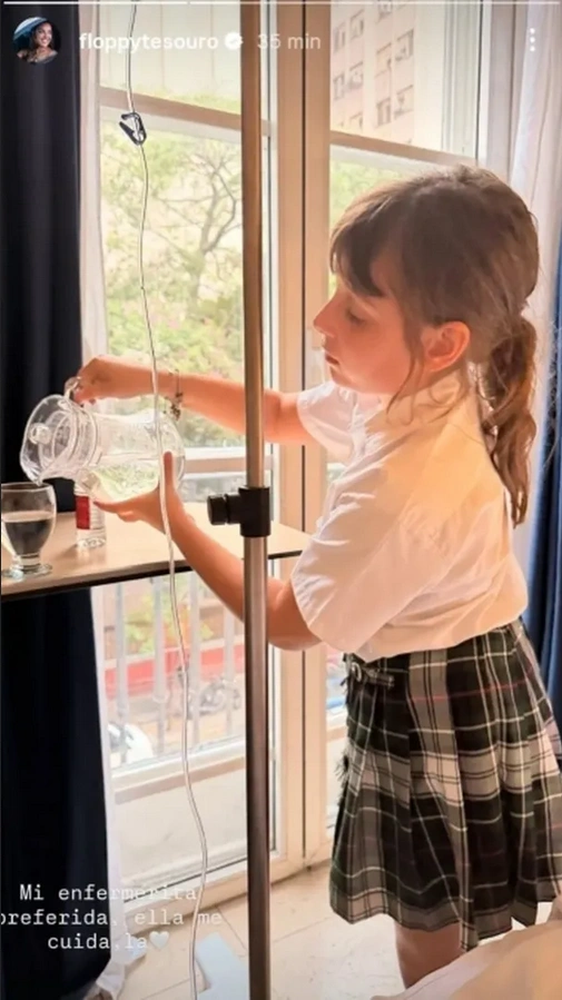 En medio del tratamiento, la modelo compartió imágenes que reflejan el lado más humano y tierno de su internación. Una de las protagonistas centrales de estos días ha sido su hija Moorea, de 9 años, quien se ha convertido en su pilar fundamental dentro de la habitación del sanatorio. Floppy mostró con orgullo cómo la pequeña la asiste en las tareas más simples, como acercarle un vaso de agua.