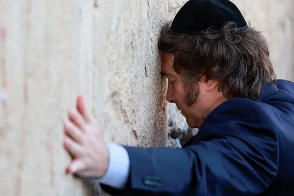 04:30 horas: el Presidente Milei visita el Muro de los Lamentos.