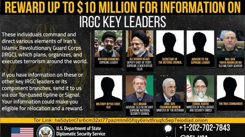 En ese marco, el Departamento de Estado de los Estados Unidos anunció una recompensa de U$S10 millones por información sobre Jamenei y otros nueve altos cargos de Teherán, como Alí Lariyani, secretario del Consejo Supremo de Seguridad Nacional; Esmail Jatib, ministro de Inteligencia; Eskandar Momeni, ministro del Interior, y los militares Yahya Rahim Safavi y Alí Asghar Heyazi.