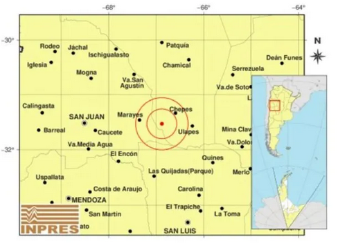Según informó el Instituto Nacional de Prevención Sísmica (INPRES), el temblor se originó cerca de la localidad riojana de Ulapes, a 35 kilómetros al suroeste de Chepes.