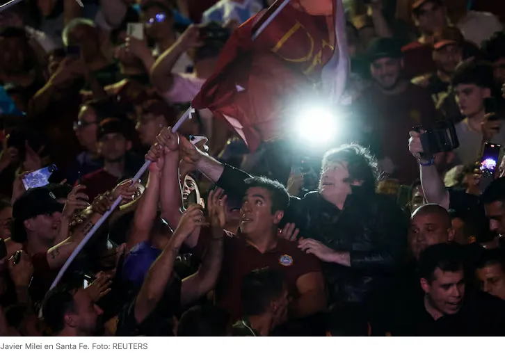 Luego de una maratónica entrada rodeado de la militancia libertaria en medio del calor santafesino, el mandatario afirmó que “es una alegría enorme cerrar la campaña donde el General Belgrano creó la bandera argentina”.