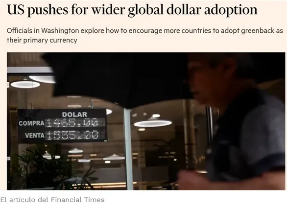EEUU busca impulsar la dolarización en la Argentina y otros países para contrarrestar a China, según Financial Times